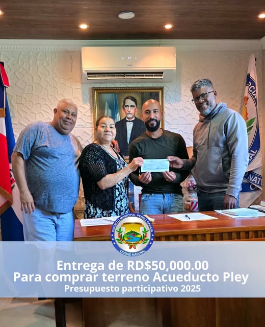 Cumpliendo con el #Presupuestoparticipativo2025, el alcalde Jeudith Rodriguez hace entrega de RD$50,000.00 pesos a una comisión de la comunidad del play, para la compra de un terreno para ampliación del acueducto de la comunidad.
