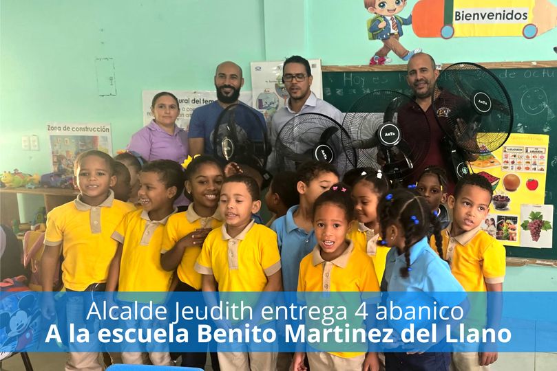 El alcalde Jeudith Rodriguez hizo entrega de 4 abanicos para la escuela Benito Martinez del Llano de Pedro García.