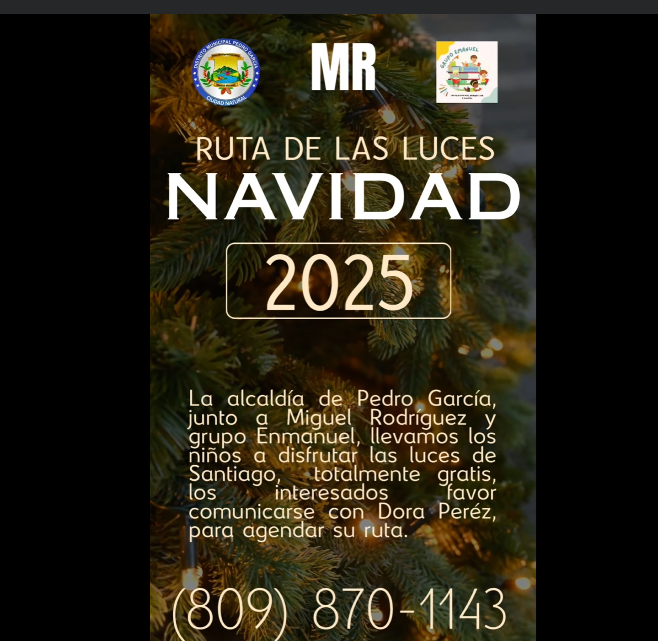 Juntos por los niños, el D M Pedro Garcia , #Miguelrodriguez, @#Grupoenmanuel, en esta Navidad, estamos llevando tours de niños y jóvenes a la ciudad de Santiago, para ver los parques de luces de navidad de la Alcaldía y el monumento, y osar una noche mágica en ésta navidad. (Gratis)