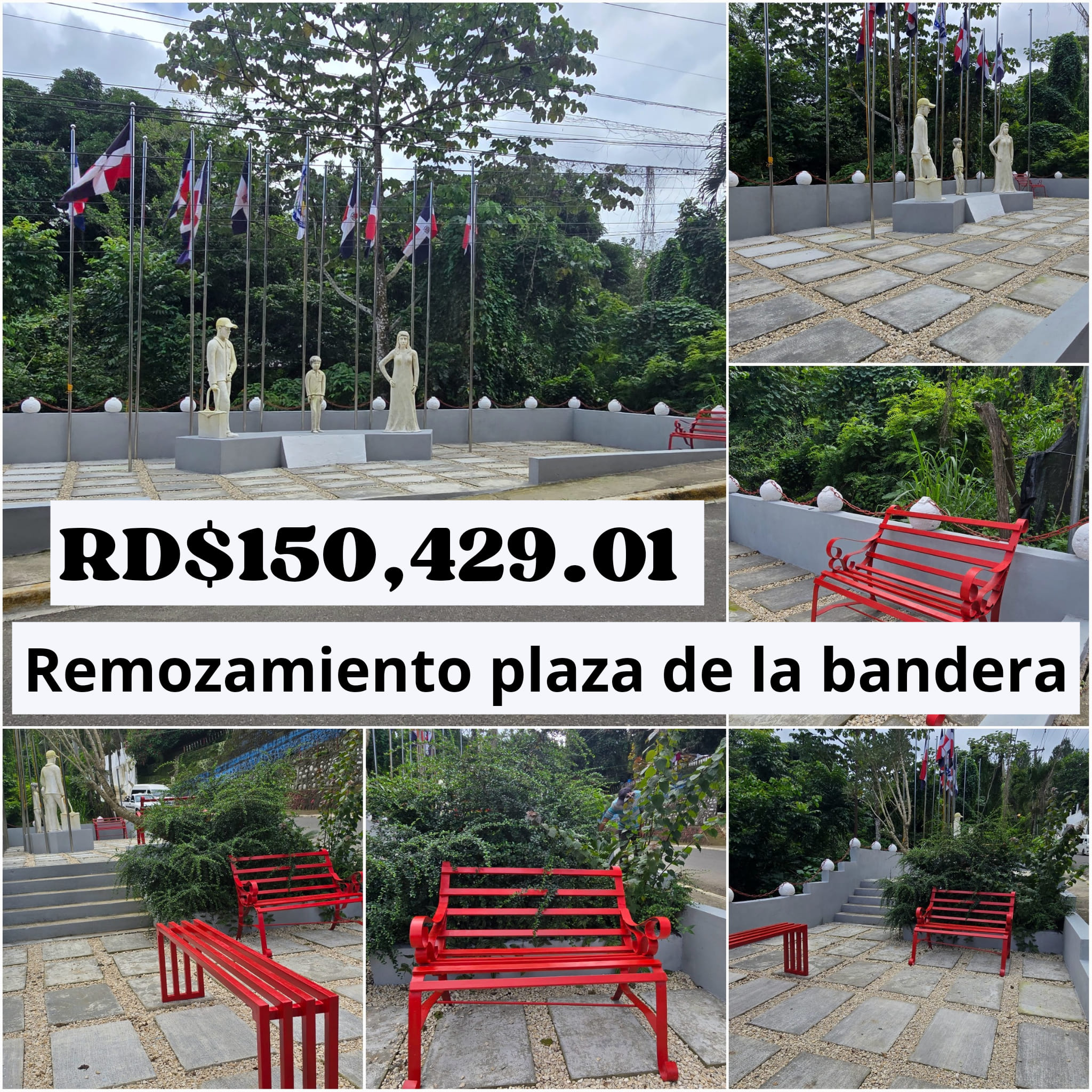 RD$ 150,429.01 pesos, en el remozamiento de la plaza de la bandera (monumento hijos ausentes de Pedro García)